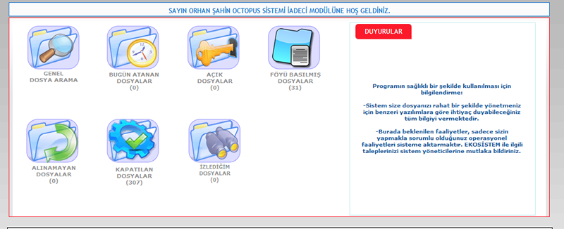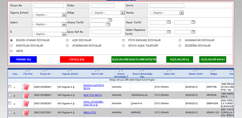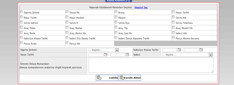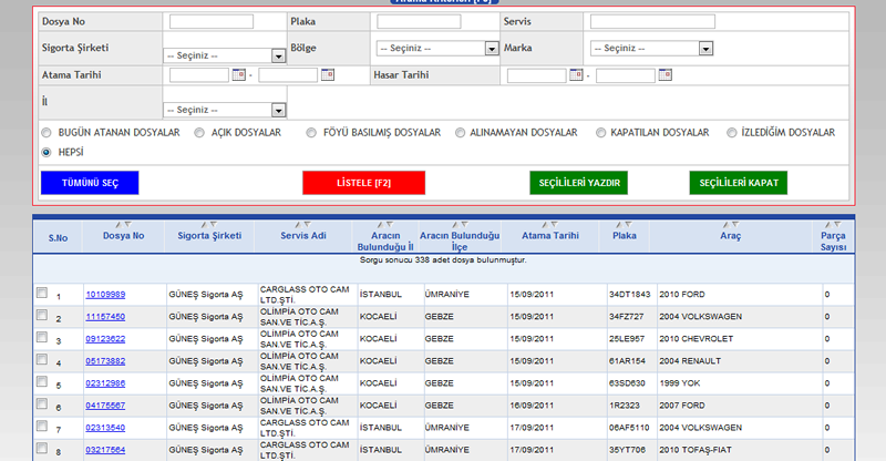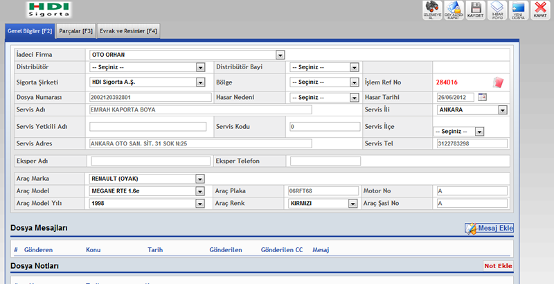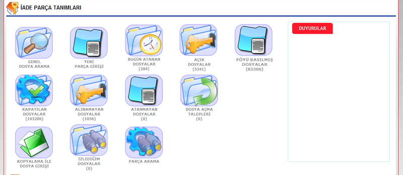 Hurda Parça Takip Sistemi’nin tüm iş sürecinin takip ediliği, raporlandığı ve yönetildiği modüldür. ÖTA konusunda teslim noktası bazında toplanan araçları raporlamakta ve merkeze çekim işlemindeki süreci yönetebilmektedir. İade Parça modülü; parça toplayan iadecilerin, servislerin, parçaların, sigorta şirketlerinin yönetildiği modüldür. Merkez modülü; sigorta şirketi, il, araç markası gibi kilit noktaların tanımlarını yaparak sigortra şirketinden gelen parça tanımlarını otomatik iadecilere atayabilmektedir. Günlük, haftalık, aylık, yıllık iadeci, sigorta şirketi, marka bazında performans raporları oluşturarak işleyişe gerektiği noktalarda müdahale edebilmektedir.