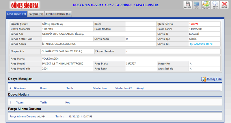 Hurda Parça Takip Sistemi iş sürecini hızlandırmak, kullanıcılar arası irtibatı artırmak amacı ile özel geliştirilmiş mesajlaşma sistemi bulunmaktadır. Mesajlaşma istenir dosya içerisinden istenir ise dosyadan bağımsız şekilde yapılabilinir. Raporlama modülünde istenilen kolonlar belirlendikten sonra raporlanacak kriterler belirtildikten sonra detaylı rapor alınabileceği gibi raporlar excele de aktarılabilinmektedir.