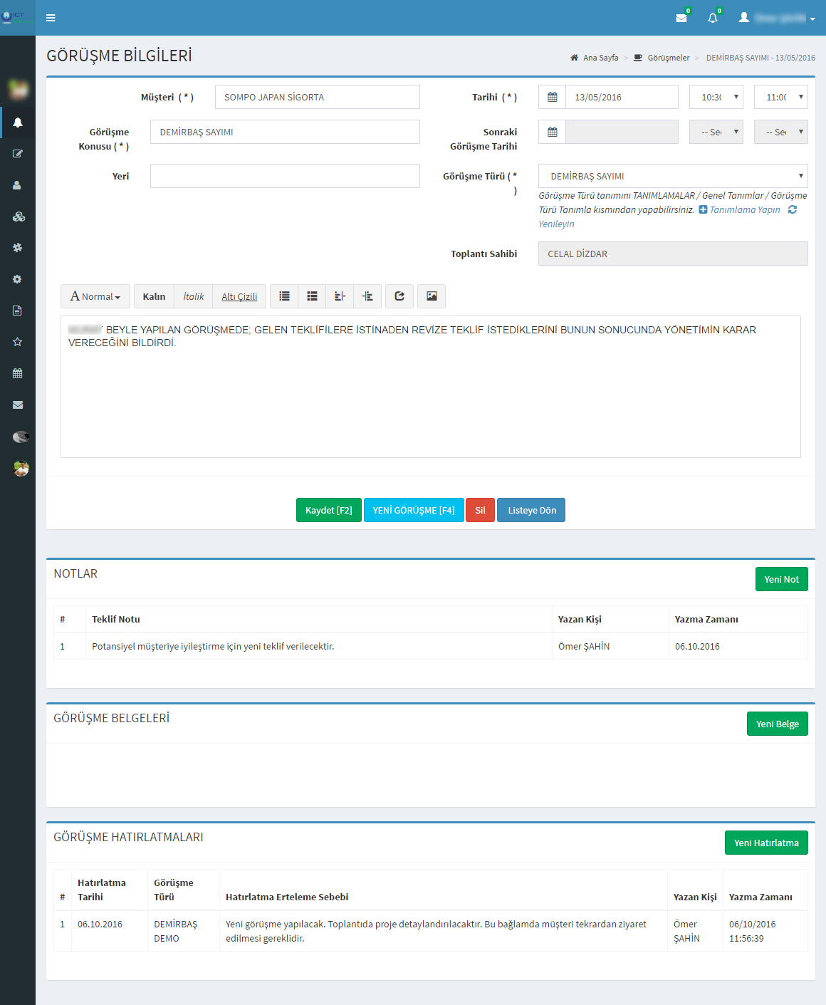 Müşterileriniz ile yapmış olduğunuz tüm görüşmeleri kayıt altına alın. Daha önceden bu müşteri ile ne görüşüldü, kim görüştü kargaşasına son verin.