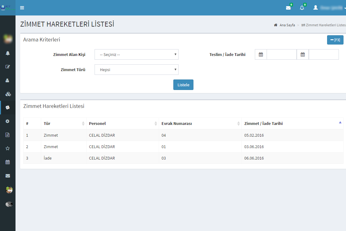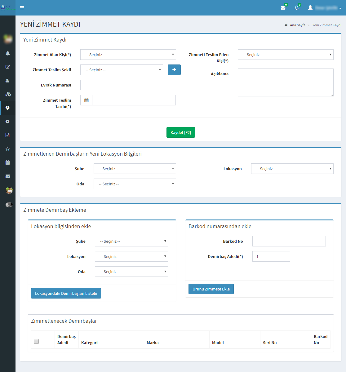 Demirbaşlara ait tüm zimmetleme işlemlerini yapabilirsiniz ve daha sonra bu zimmetleri iade alıp tekrar zimmet ataması yapabilirisiniz. Daha sonra bu zimmet hareketlerini kolayca raporlayabilirsiniz.