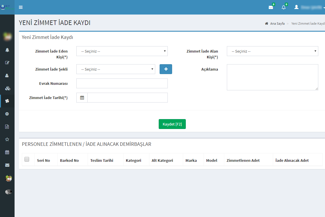 Bir personelin ayrılması veya görev değişimi yapması vb sebeplerden dolayı demirbaş zimmetinin iadesini yapabilir ve bu iade hareketlerini takip edebilirsiniz.